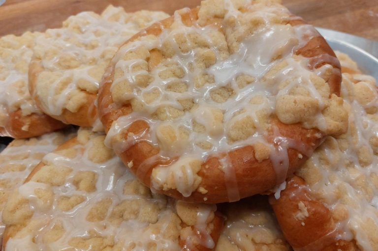 Med en mör konsistens, mycket smör och lite vanilj är det här ett perfekt fikabröd till eftermiddagskaffet. Ursprunligen härstammar den här bakelsen från södra Tyskland och har blivit väldig populär här i Fågelfors bland kunder.